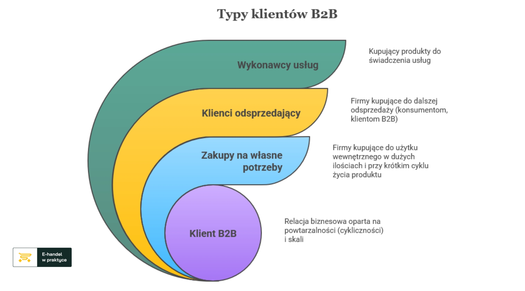 W praktyce możemy wyróżnić trzy główne kategorie klientów B2B, z którymi będziesz spotykać się w e-commerce: