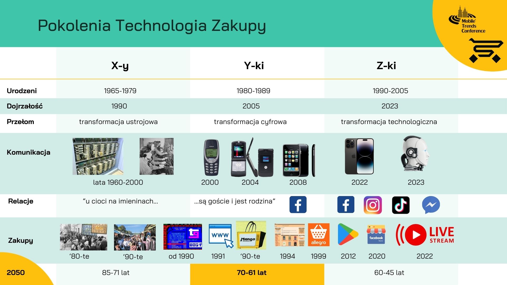 Taki stan rzeczy wynika z różnych "epok" technologicznych, w których żyło każde pokolenie. Opowiadałam o tym podczas konferencji Mobile Trends 4 Experts w wystąpieniu "Czy seniorzy są mobilni? W 2050 roku będą aplikacje, ale nie będzie smartfonów!". Zostawiam w tym miejscu planszę, która mocno przypadła do gustu uczestnikom wydarzenia. Nagranie obejrzysz ->> TUTAJ.