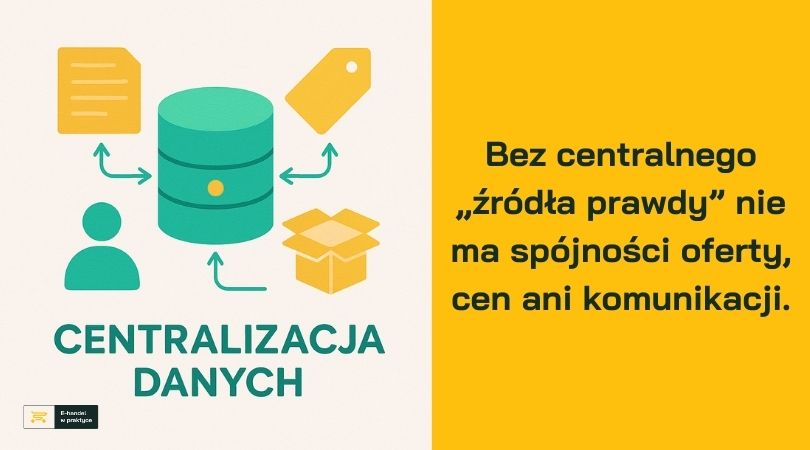 Klient musi widzieć tę samą ofertę niezależnie od kanału. A to oznacza, że dane o produkcie, cenie, dostępności i statusie zamówienia muszą być zsynchronizowane. Potrzebujesz jednej, spójnej bazy danych produktowych, cenowych, klienckich, stanów magazynowych i statusów zamówień dostępnej we wszystkich kanałach sprzedaży. Bez centralnego „źródła prawdy” nie ma spójności oferty, cen ani komunikacji.