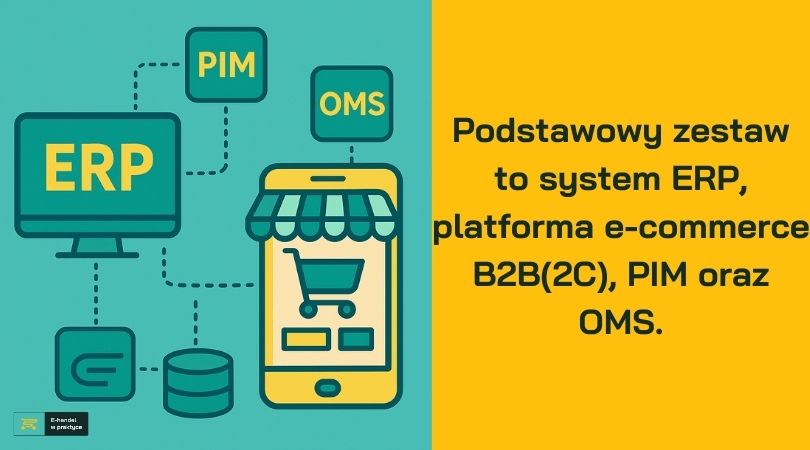 Podstawowy zestaw to system ERP, platforma e-commerce B2B(2C), PIM oraz OMS. Do tego integratory – gotowe rozwiązania lub konieczność ustawienia dedykowanej integracji przez API lub szynę danych. I tu też ktoś może powiedzieć: czy PIM lub OMS są podstawowe i konieczne? Przecież w ERP i platformie e-commerce też można przechowywać kartotekę produktową i obsługiwać zamówienia. Jeśli bijesz się z takimi myślami, to zweryfikuj decyzję pod kątem planów przyszłościowych. Systemów nie wdraża się na kilka miesięcy, tylko na kilka(naście) lat. Jeśli masz kilka lub więcej tysięcy indeksów z wariantami, chcesz prowadzić skuteczną sprzedaż krzyżową, sprzedawać zagranicą oraz na marketplace, a do tego masz wiele oddziałów i mnóstwo procesów do uspójnienia, to decyzja jest oczywista.